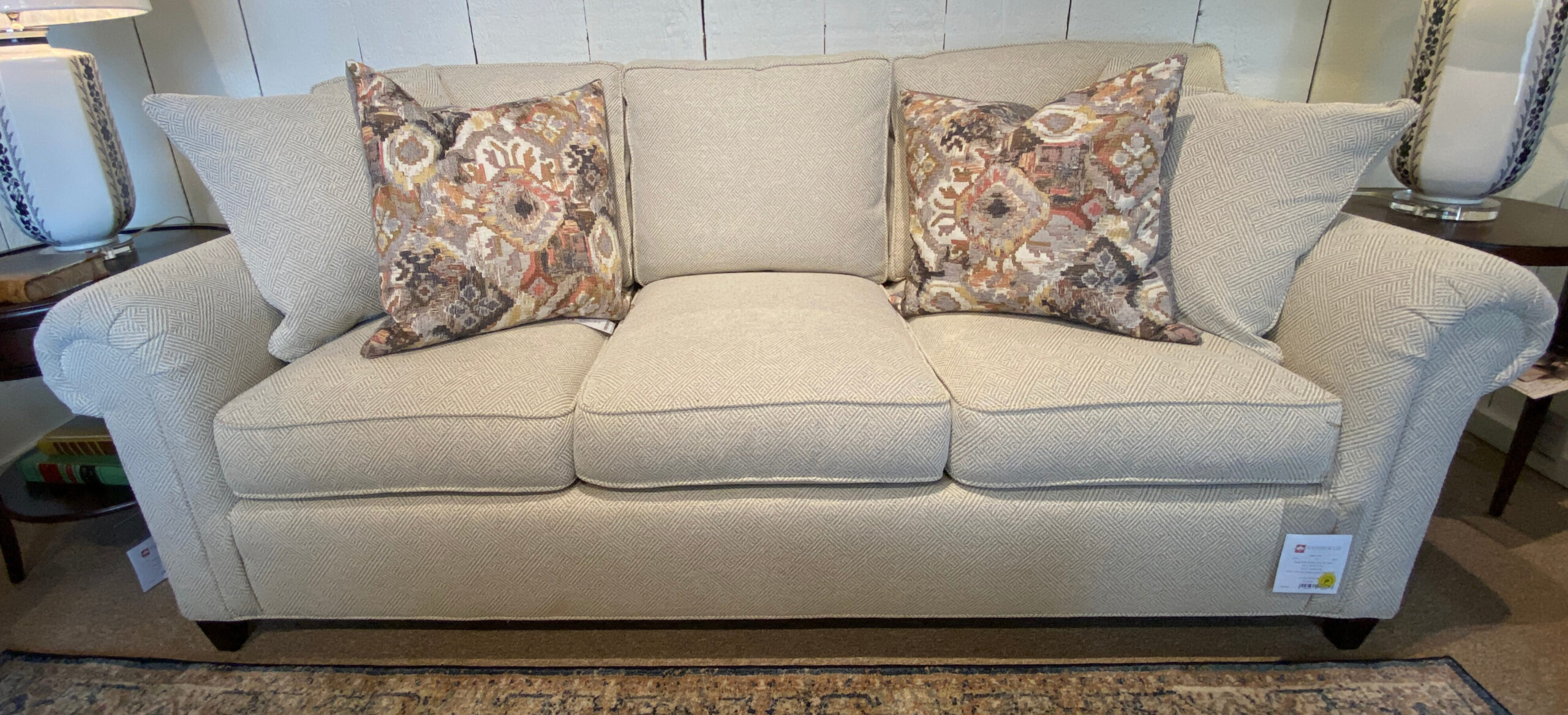 Performance Fabric:  Wyrick Camel, Comfort Fiber Seat, no skirt and rolled arm