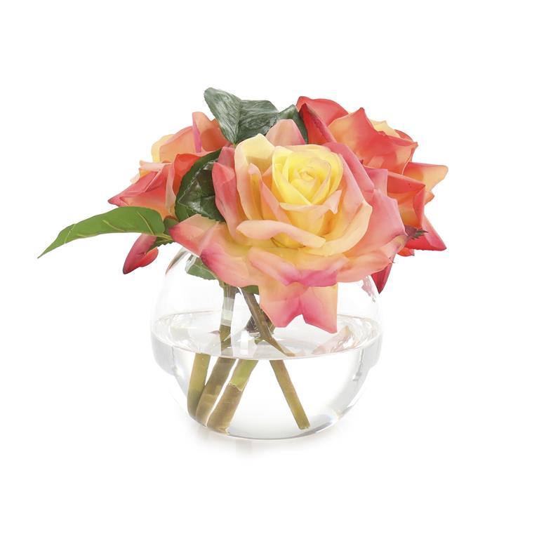 Real Feel Beauties displays a stylish arrangement of real feel roses, displayed within a round rose bowl and faux water.